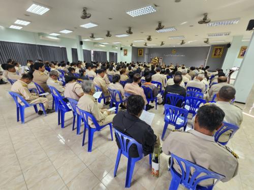 นายณัฐวุฒิ อนุโยธา นายอำเภอป่าโมก เป็นประธานในการประชุมหัวหน้าส่วนราชการ หัวหน้าหน่วยงานรัฐวิสาหกิจ ผู้บริหารสถานศึกษา กำนัน ผู้ใหญ่บ้าน การประชุมคณะกรรมการรักษาความสงบเรียบร้อย และการประชุมคณะกรรมการศูนย์ปฏิบัติการป้องกันและปราบปรามยาเสพติดอำเภอป่าโมก ครั้งที่ 12/2568 ประจำเดือนธันวาคม 2568 เพื่อติดตามผลการปฏิบัติราชการ ชี้แจงข้อราชการ นโยบาย เพื่อนำไปสู่การปฏิบัติในระดับตำบล/หมู่บ้าน โดยมีหัวหน้าส่วนราชการอำเภอ ผู้บริหารสถานศึกษา กำนัน ผู้ใหญ่บ้าน แพทย์ประจำตำบล สารวัตรและผู้ช่วยผู้ใหญ่บ้าน เข้าร่วมประชุม และร่วมกิจกรรมโดยพร้อมเพรียงกัน ซึ่งก่อนเริ่มการประชุมมีการมอบเครื่องหมายสำคัญและหนังสือสำคัญให้กับ กำนัน ผู้ใหญ่บ้าน ที่ได้รับตำแหน่งใหม่ มอบใบประกาศเกียรติคูณให้แก่ผู้มีผลการปฏิบัติงานดีเด่น ด้านการป้องกันแก้ไขปัญหายาเสพติด มอบเกียรติบัตรให้กับผู้ปฏิบัติงานดีเด่น ด้านการส่งเสริมคุณธรรมและความโปร่งใสในการปฏิบัติราชการ การชี้แจงการทำประกันภัยภาคบังคับ โดยสำนักงานคณะกรรมการกำกับและส่งเสริมการประกอบธุรกิจประกัยภัย (คปภ.) จังหวัดอ่างทอง ชี้แจงการฟื้นฟูเยียวยาผู้ประสบอุทกภัย โดยสำนักงานป้องกันและบรรเทาสาธารณภัย (ปภ.) จังหวัดอ่างทอง